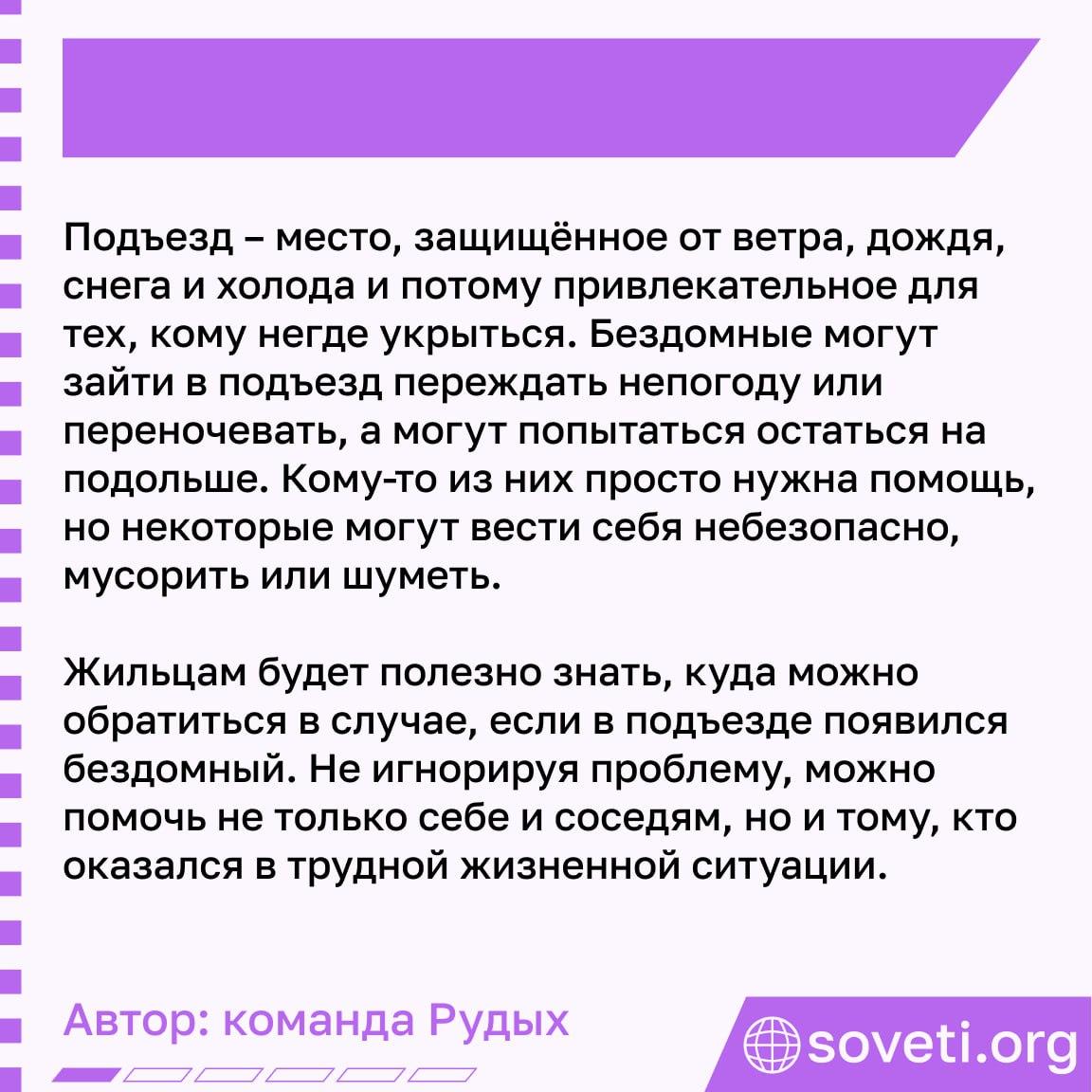 4. Разместить в подъезде информацию о центрах помощи бездомным