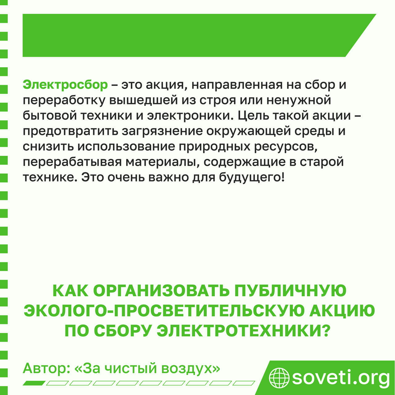 Как организовать публичную эколого-просветительскую акцию по сбору электротехники?