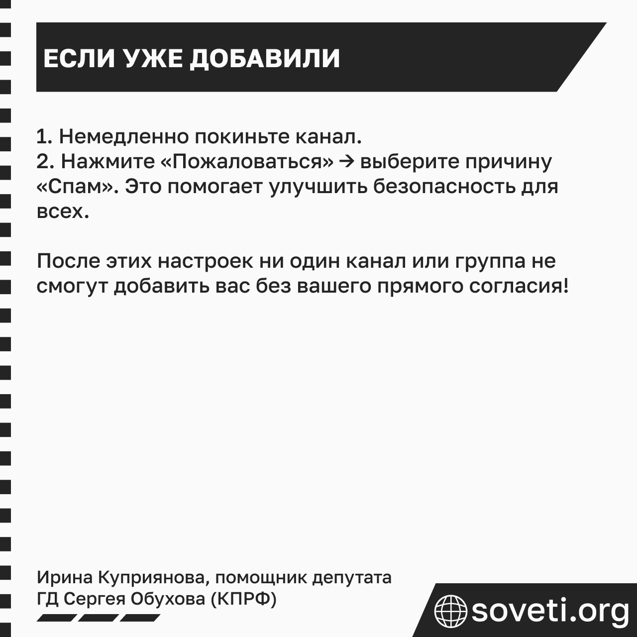 После этих настроек ни один канал или группа не смогут добавить вас без вашего прямого согласия!