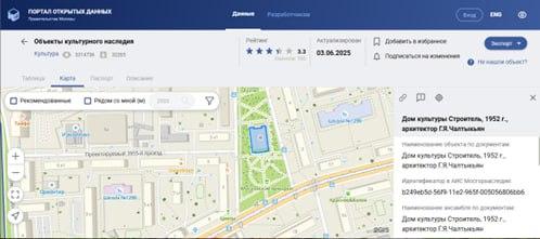 Для этого необходимо зайти на сайт Департамента культурного наследия (ДКН) в раздел Перечень Объектов культурного наследия (ОКН) и найти адрес объекта на карте: https://data.mos.ru/opendata/530/map?version=10&release=298
