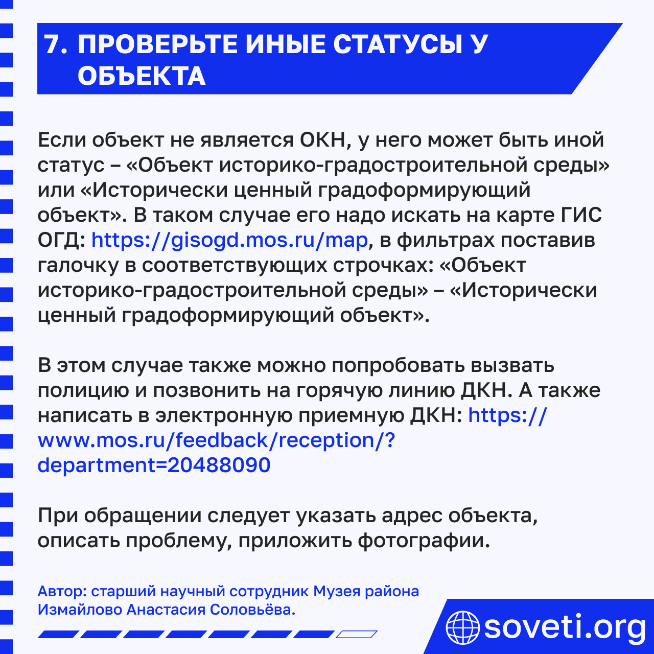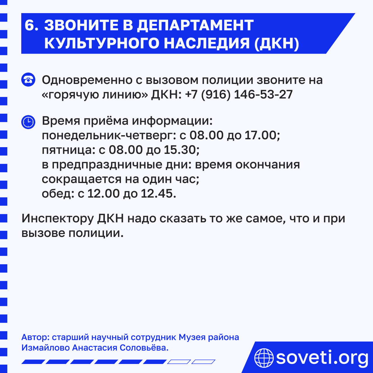 6. Звоните на Горячую линию Департамента культурного наследия одновременно с вызовом полиции