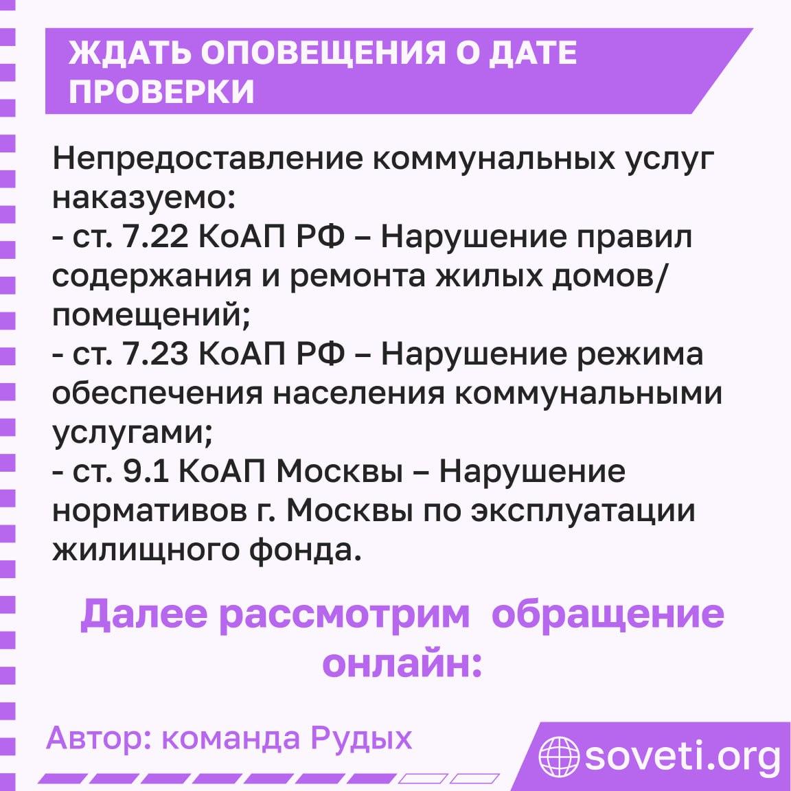 - ст. 9.1 КоАП Москвы – Нарушение нормативов г. Москвы по эксплуатации жилищного фонда.