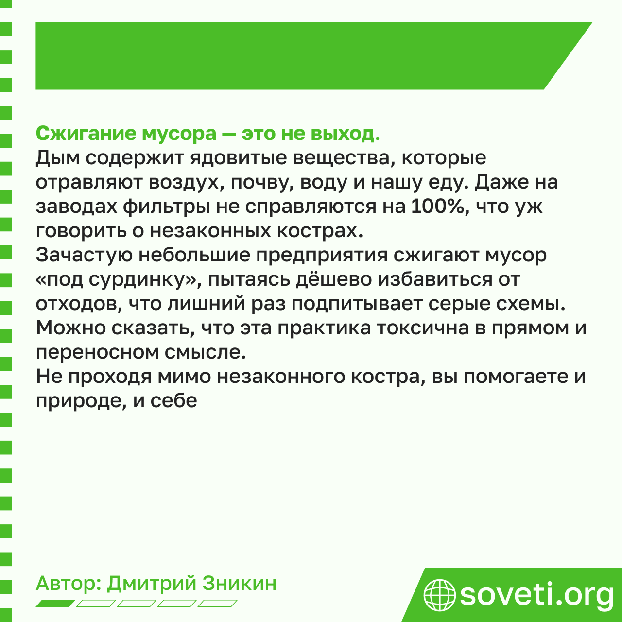 Не проходя мимо подобного незаконного костра, вы помогаете и окружающей среде, и самим себе.