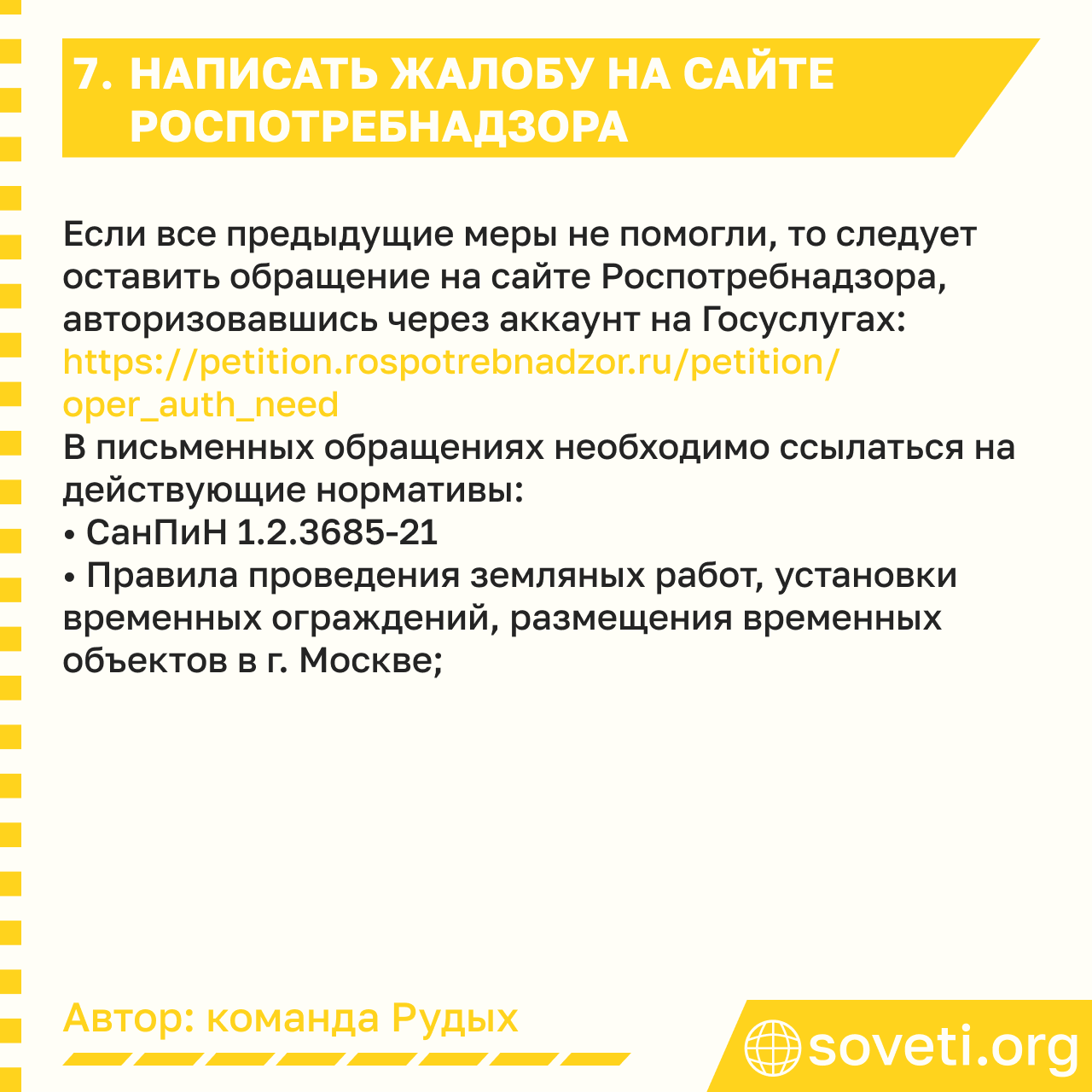 Если все предыдущие действия не помогли, то следует оставить обращение на сайте Роспотребнадзора, авторизовавшись через аккаунт на Госуслугах: https://petition.rospotrebnadzor.ru/petition/oper_auth_need