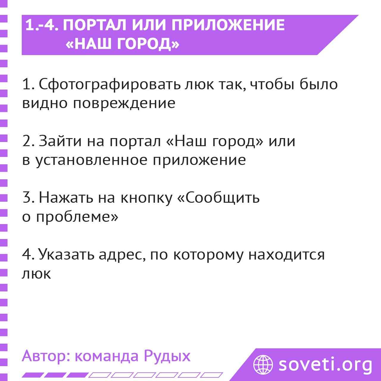 Но проще всего сообщить о повреждённом люке с помощью портала или приложения «Наш город»: